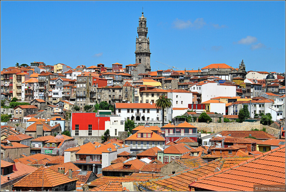 Вид на колокольню Клеригуш над крышами Порту. Экскурсии в Португалии по самым красивым обзорным площадкам северной столицы.