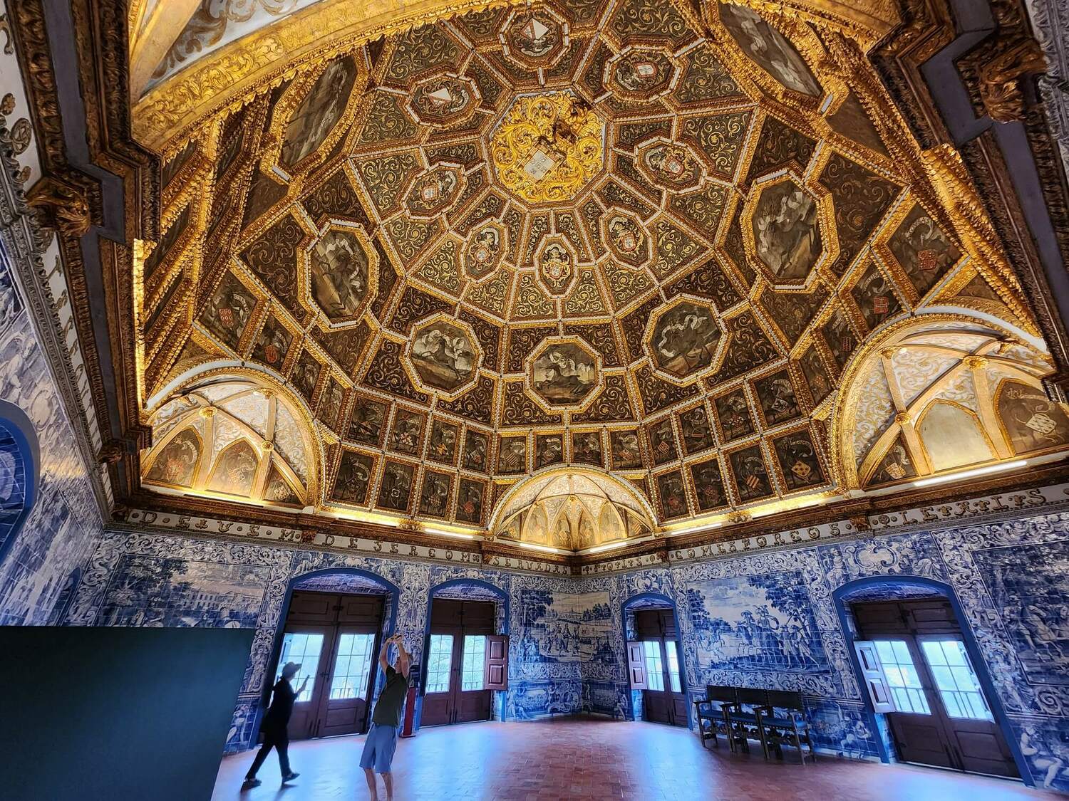 Роскошный Зал Гербов в Национальном дворце Синтры: под куполом собраны гербы 72 знатных португальских семей, а стены украшены историческими панно азулежу.