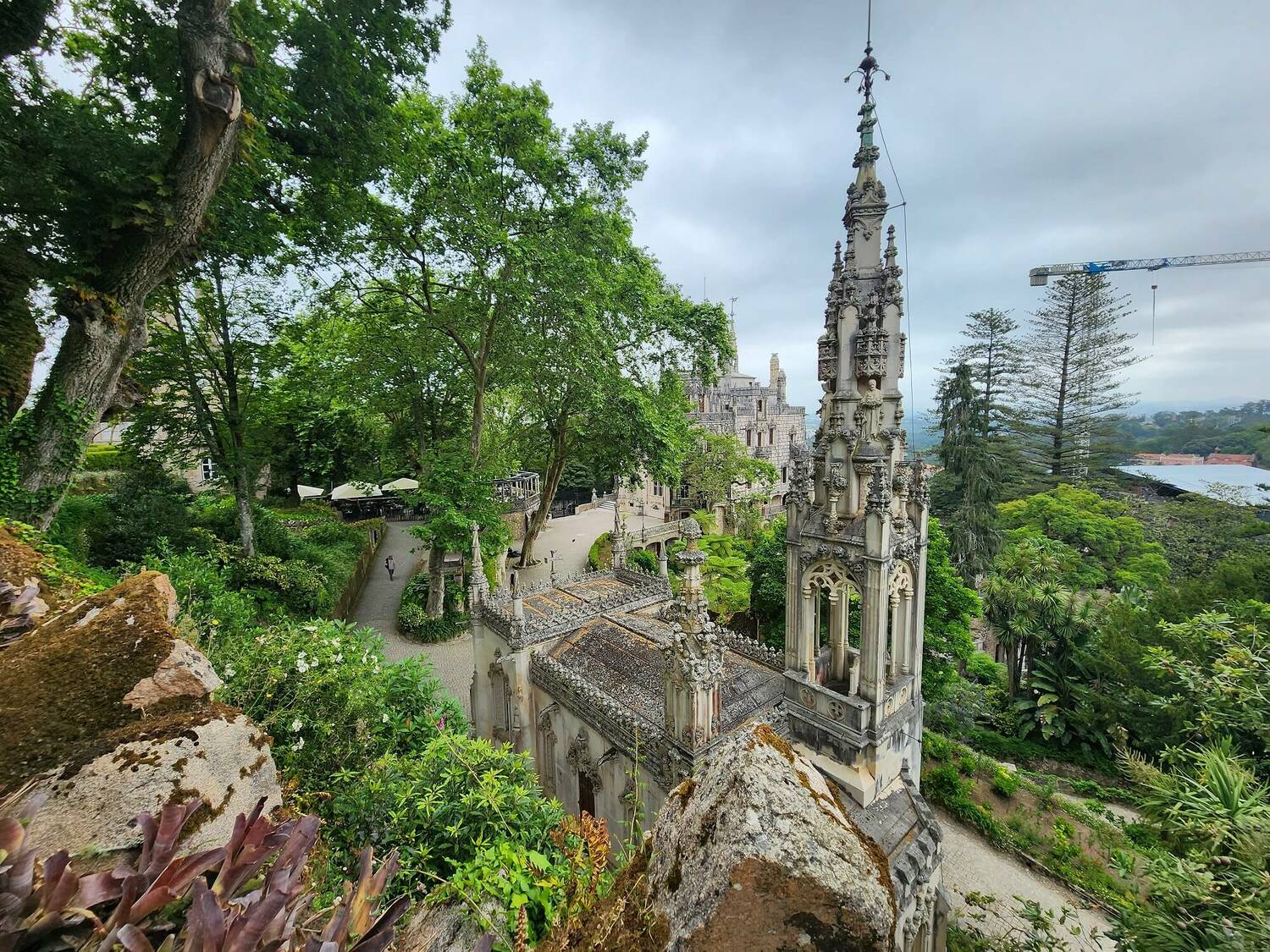 Тончайшая работа по камню: часовня Кинта да Регалейра поражает своей детализацией. С этого ракурса отлично видна гармония между готическими шпилями и парковым ансамблем. Идеальное место для атмосферных фото во время нашей прогулки.
