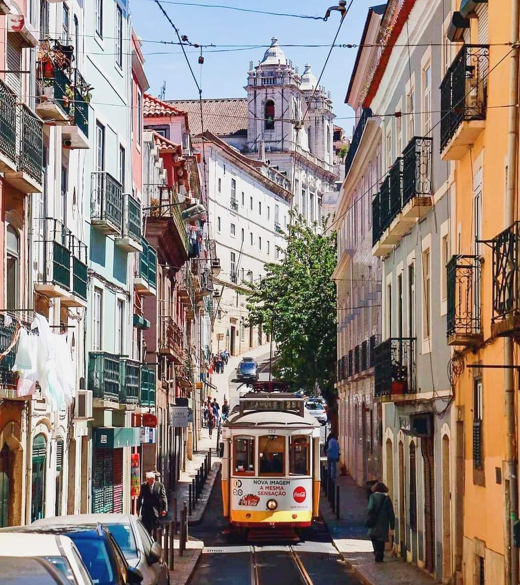 Прогулка по старинным кварталам становится по-настоящему живой, когда мимо проносится легендарный трамвай — это именно то, что посмотреть в первую очередь, выбирая экскурсии в Португалии с частным гидом в Лиссабоне